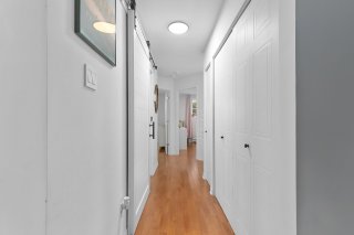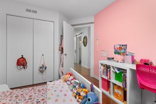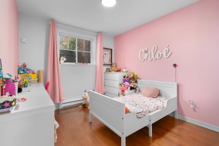 DEUXIÈME CHAMBRE -- Plancher de bois franc et grand garde-robe. Parfaite comme chambre d'enfant, bureau fermé pour télétravail ou pièce d'appoint polyvalente.
