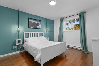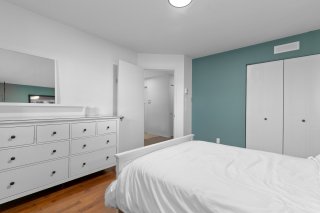 CHAMBRE PRINCIPALE -- Spacieuse, loge aisément un lit king. Belle fenestration, plancher de bois franc et garde-robe pratique. Pièce calme, propice au repos, avec murs faciles à meubler.